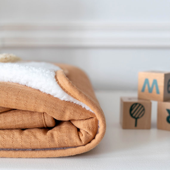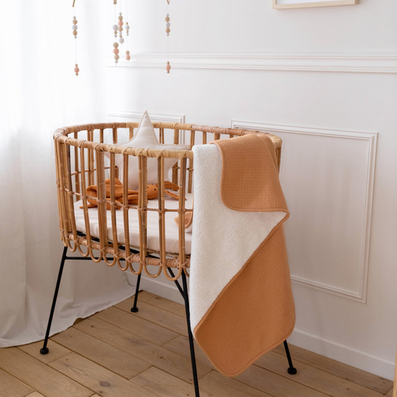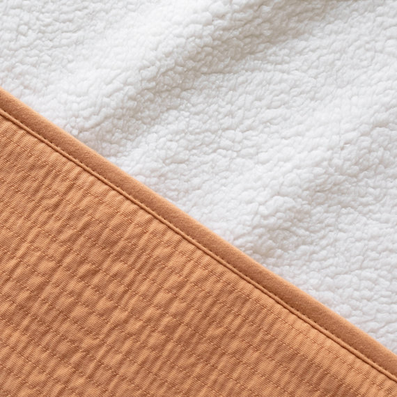 Moelleuse et feutrée, la couverture doublée de teddy cajole bébé d’une chaleur douce et rassurante.
